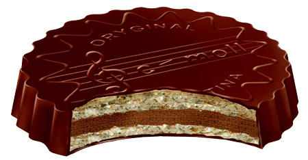 Вафли с ореховой начинкой в натуральном шоколаде.